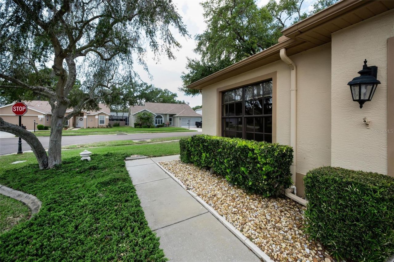 IN TIMBER GREENS A GATED 55+ COMMUNITY! This corner lot VILLA features 2-bedrooms 2 baths and a 2-car garage. Open the door to the Living room/dining room combo, Large eat-in kitchen with Stainless steel appliances and Resin countertops and Island. Primary bedroom with walk-in closets and updated primary bathroom with walk-in shower. Second bedroom is very spacious. Laundry room with washer and dryer. Spacious enclosed Lanai looking over a serene setting, with pond. Timber greens has a 18-hole par 71 golf course, clubhouse, pro shop, community pool, and spa, as well as tennis, pickle ball, bocce, and shuffleboard courts, there's never a shortage of activities. Engage in arts and crafts, dine at the 19th Hole Bar and Grill, or enjoy an evening with friends in the card room. Schedule your private viewing today!!